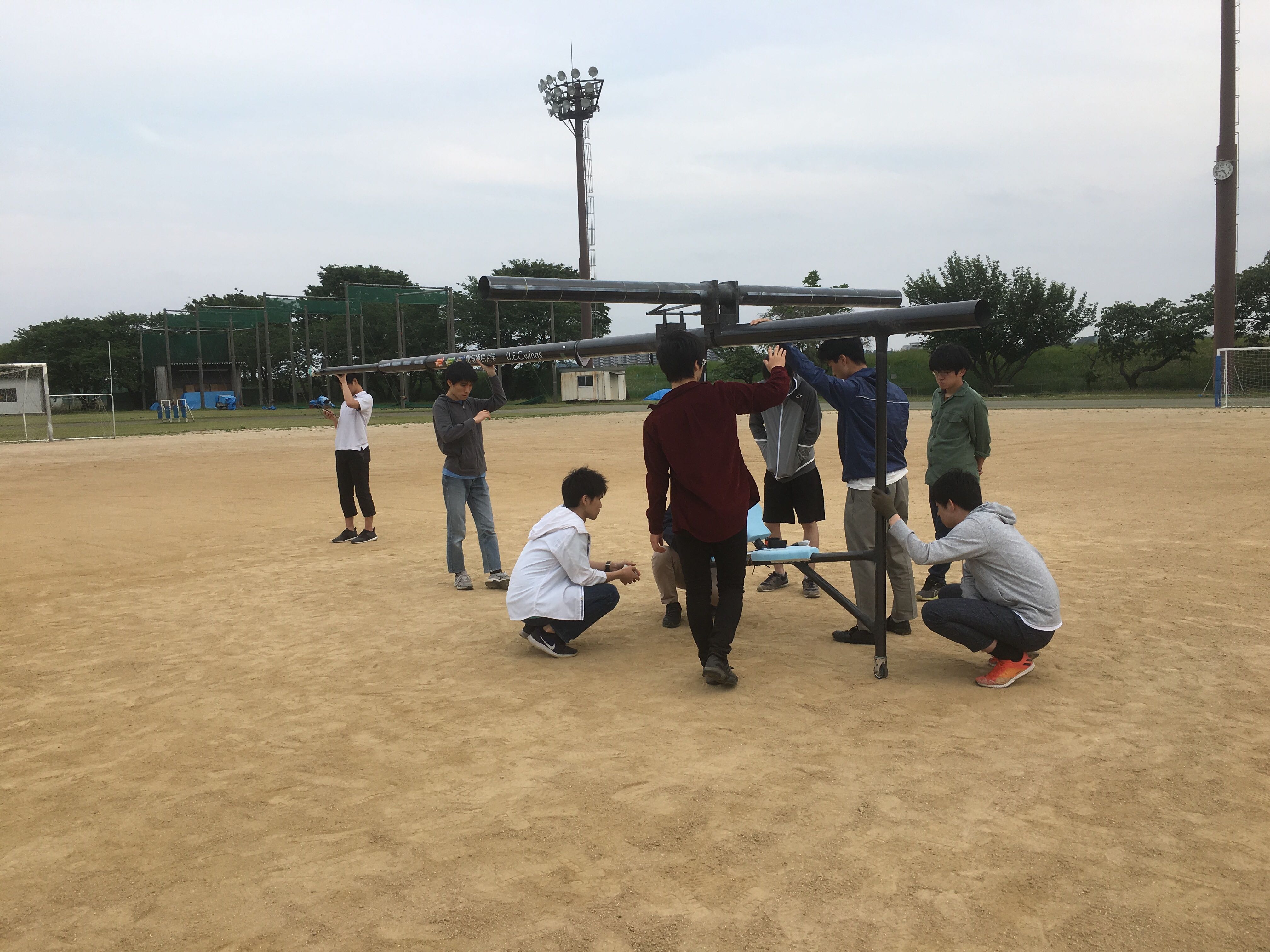 その翌週、5/12にはGTFを大学近くのグラウンドで行うはずでしたが、強風のため翼を付けることができず、コックピット周りのみの組み立てとなりました。そこで実際のTF時を想定したグラウンドクルーの動き、声掛けを行いました。